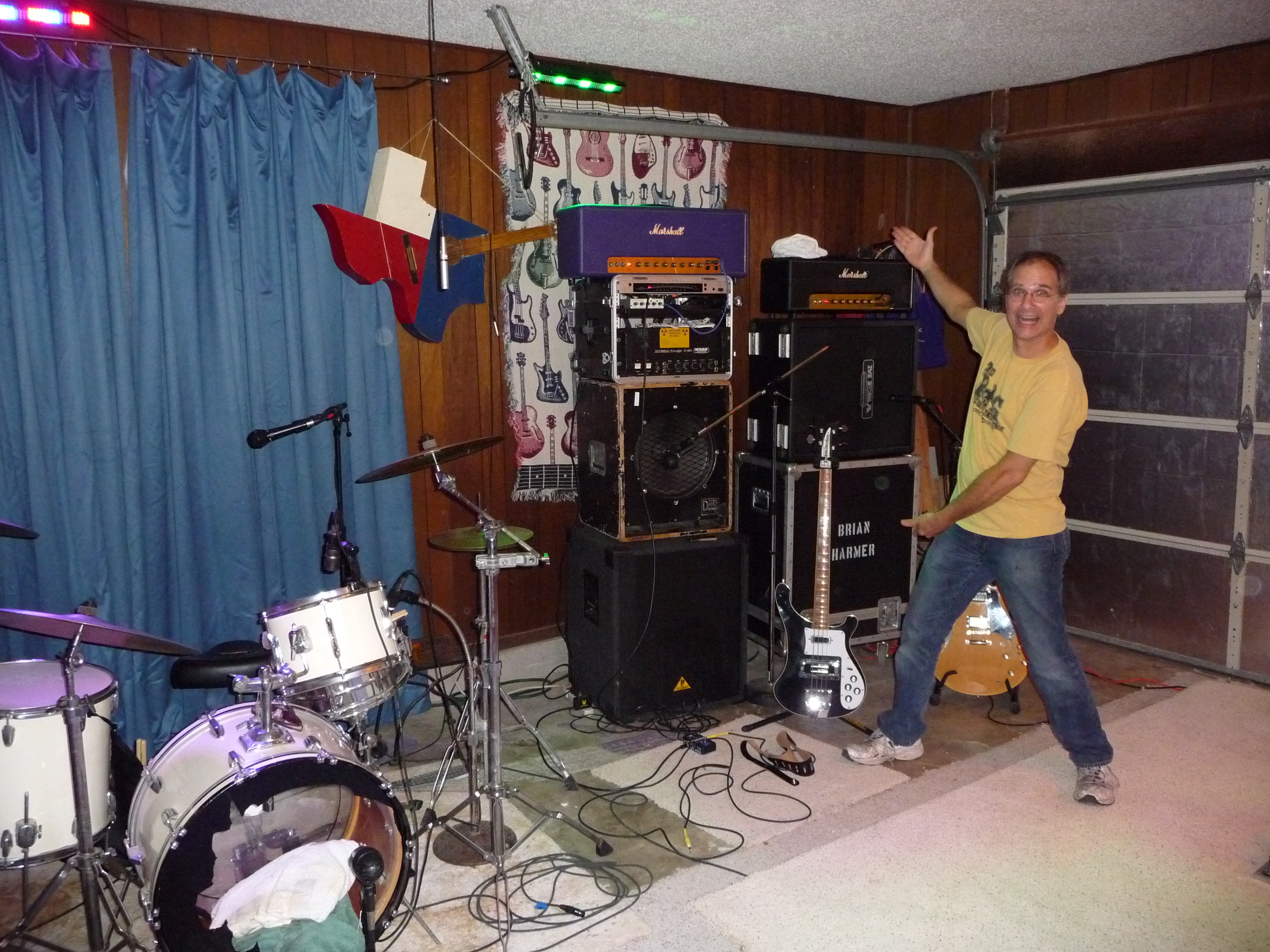 Here are some photos of The Yes Men in action at our state of the art high tech recording facility (Brian’s garage). Click on any photo to see the full size image: